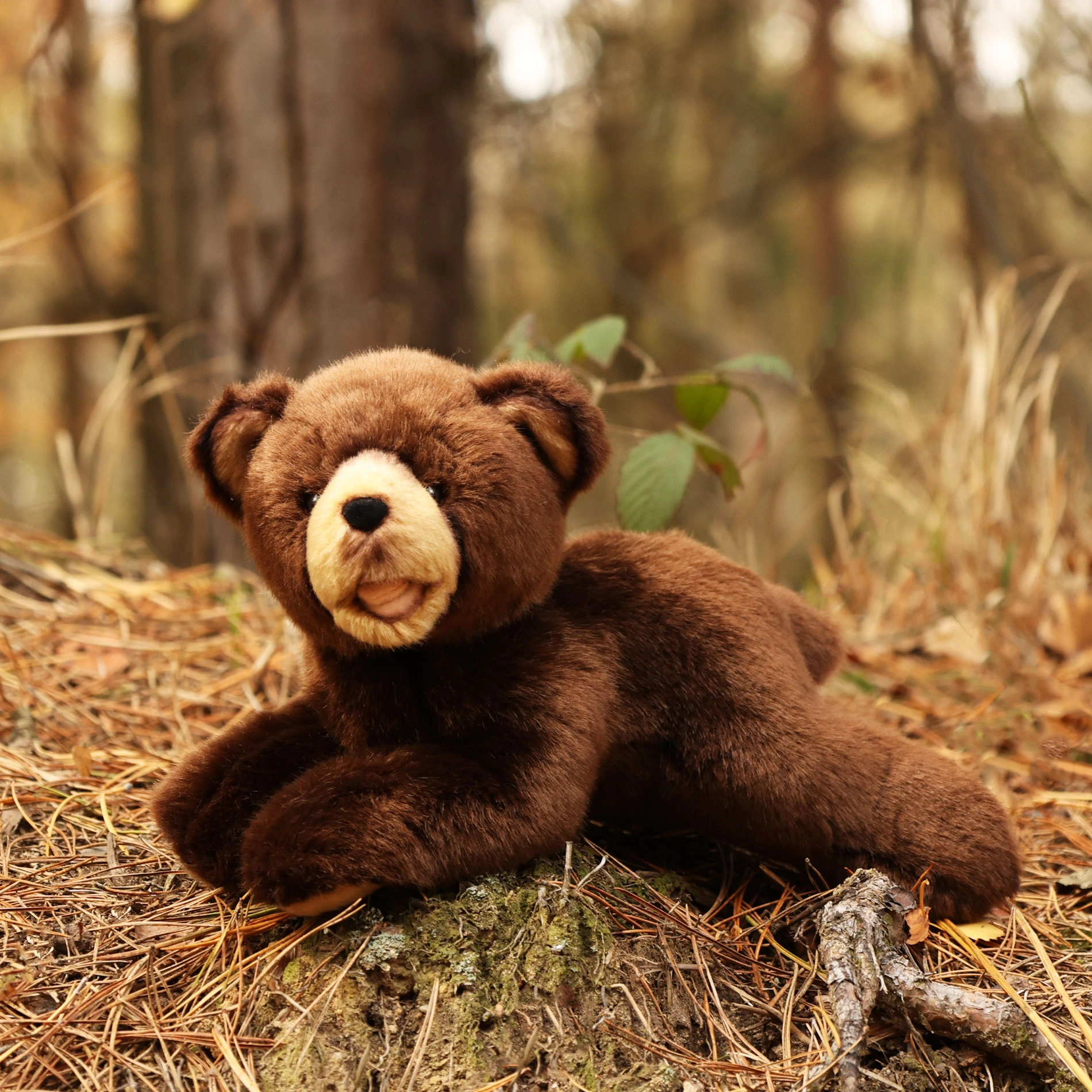 Ours en peluche brun foncé allongé 24 cm ÉCO-RESPONSABLE