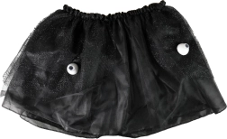 Le costume comprend une jupe tutu noire ornée d’un motif toile d’araignée, offrant un look authentique idéal pour les fêtes à thème.