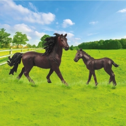 Enrichissez votre collection de jouets avec ce magnifique ensemble de chevaux avec enclos. La figurine du cheval et du poulain a un aspect réaliste et par son design ravit tous les âges. Le pack contient :
