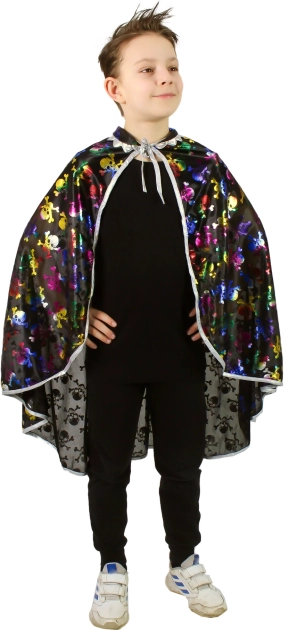 Transformez votre enfant en magicien ou sorcière en un instant grâce à une cape légère et confortable qui se noue facilement au cou. Grâce à son col et à l’imprimé métallique de crânes bien visible, le costume ressort parfaitement sur les photos comme sur la piste de danse.