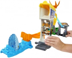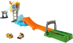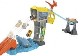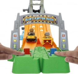 La piste de course Hot Wheels Jurassic World vous transporte dans un univers rempli de vitesse et de frissons. Ce set comprend :