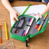 Une trousse scolaire à trois étages avec un design de ballon de football offre un espace supplémentaire pour tous les articles de papeterie, y compris les crayons de couleur et feutres robustes, grâce aux élastiques adaptés. Elle est équipée de fermetures éclair de qualité et dispose d'un dossier renforcé pour une manipulation facile.