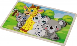 Ce puzzle en bois avec des animaux est un premier puzzle idéal pour les enfants. Les pièces en bois solides tiennent bien en main et encouragent le jeu, développant la concentration, l’imagination et la coordination œil-main.