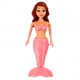 La poupée a de longs cheveux bruns qui ajoutent à son charme. Sa queue turquoise ou rose arbore un joli design rappelant les classiques contes de sirènes.