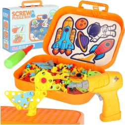 Découvrez un jouet ludique et éducatif pour petits constructeurs : une mosaïque portable avec perceuse électrique et vis. Les enfants entraînent leur motricité fine, leur créativité et leur raisonnement logique en construisant des modèles 2D et 3D aux motifs spatiaux. La mallette orange compacte sert à la fois d’espace de rangement et de surface de jeu, idéale pour les voyages.
