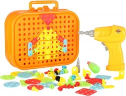Cette mosaïque créative dans une valisette pratique offre aux enfants des possibilités de construction illimitées – des images simples aux structures 3D. Les pièces colorées, vis et embouts s’assemblent facilement, tandis que la perceuse pour enfants à piles et le tournevis apportent un aspect réaliste de petit bricoleur.