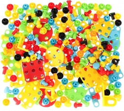 - Set polyvalent de 285 pièces : vis, embouts, éléments de formes variées, connecteurs, outils et cartes décoratives.
