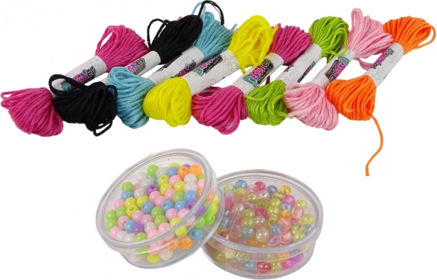Kit créatif pour enfants pour fabriquer des bracelets en mouliné. Tressage facile, combinaisons colorées, perles et guide illustré. Développe la créativité et la motricité fine.