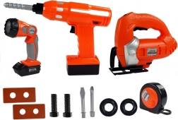 Ce kit richement équipé pour petits bricoleurs offre une expérience d’atelier réaliste. Les outils ergonomiques tiennent bien en main et, grâce à l’alimentation par piles, imitent les fonctions réelles : la perceuse visse et dévisse, la scie se met en mouvement et émet des sons authentiques, et la lampe éclaire intensément avec un angle ajustable selon les besoins.