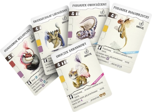 Dans Sur les ailes des dragons, les joueurs incarnent des dracologues qui explorent des grottes et attirent différentes espèces de dragons dans leurs réserves. Chaque type de dragon a des exigences distinctes et offre des bonus uniques. Votre objectif est de gérer vos ressources avec stratégie et d’activer au bon moment les puissantes capacités des cartes.