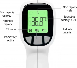 Le thermomètre est multifonction – en plus de la température corporelle, il mesure également la température des objets, par exemple le biberon de lait. L’utilisation est intuitive ; il intègre l’arrêt automatique après 10 s, le commutateur °C/°F et une mémoire de 20 mesures pour le suivi de l’état. Le coffret comprend également 2 piles AAA et une pochette pratique.