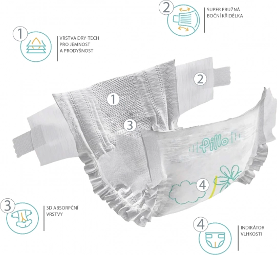 Des couches douces et fiables pour les peaux sensibles. Composition hypoallergénique sans parfum, crème ni latex pour prévenir les irritations, tandis que la technologie Dryway™ avec 3 canaux de dr... Voir plus