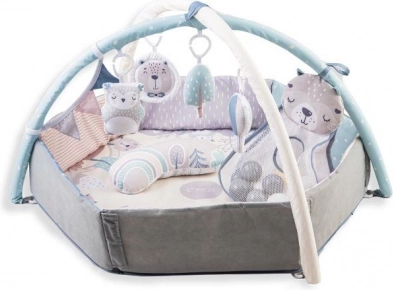 Ce tapis d’éveil est fabriqué dans un matériau durable doté de propriétés thermo-isolantes, offrant confort et sécurité. L’utilisation de couleurs pastel douces apaise et soutient le développement visuel de l’enfant. Il est complété par des jouets sensoriels qui stimulent les sens et procurent la joie du jeu.