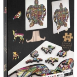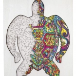 Puzzle en bois en forme de tortue avec des pièces de formes variées est idéal pour les enfants et les adultes. Il contient des pièces en forme d'animaux et d'objets, ce qui ajoute à son attractivité et à son amusement.
