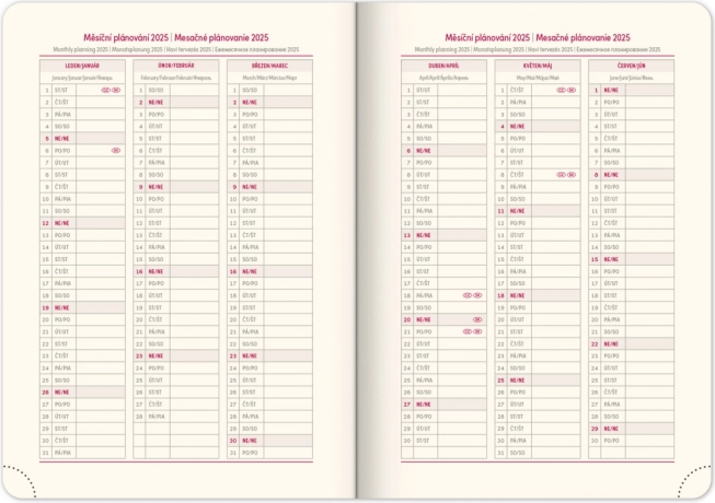 Agenda hebdomadaire Notique Twill 2025 dans une couleur bleu-argenté élégante, est l'outil idéal pour organiser vos journées. Il offre un agenda hebdomadaire clair avec un calendrier tchéco-slovaque et des légendes multilingues.