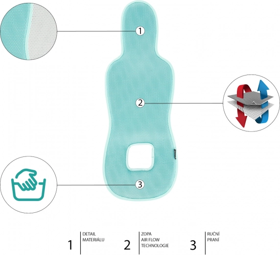 Le coussin Zopa BREEZE a été développé sur la base des retours des parents, qui souhaitaient un insert estival non seulement respirant, mais aussi entièrement compatible avec tous les éléments de sécurité des sièges auto. C’est pourquoi trois variantes spécifiques ont été créées, chacune parfaitement adaptée à la catégorie correspondante de sièges auto, afin de ne pas entraver le guidage correct des sangles. Un tissu technologiquement avancé avec une structure hexagonale 3D permet une circulation libre de l’air entre l’insert et l’enfant.