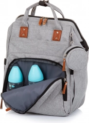Ce sac à dos à langer stylé en gris allie design moderne et fonctionnalité maximale. Grâce aux nombreuses poches, dont trois poches isothermes intérieures pour bouteilles, vous trouverez rapidement tout l’essentiel – des couches au goûter. Le sac se fixe facilement à la poignée de la poussette et, grâce aux bretelles rembourrées, se porte confortablement sur le dos.