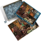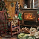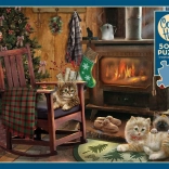 Le puzzle représente une scène de Noël avec des chatons près du poêle, idéale pour créer une atmosphère festive à la maison.