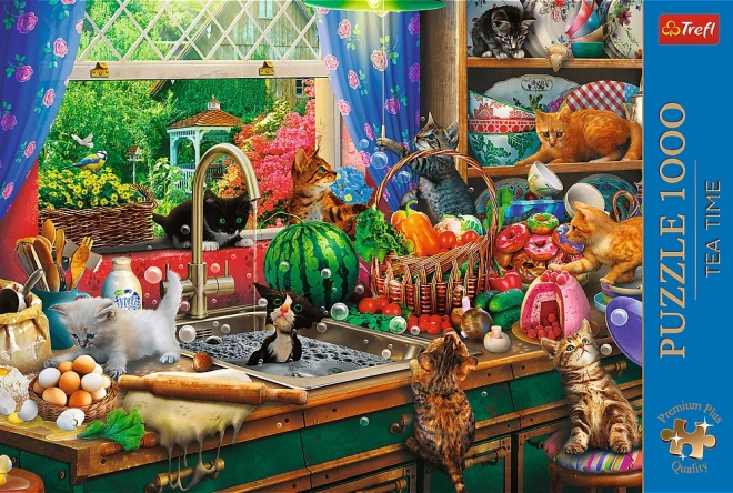 TREFL Puzzle Premium Plus : L’heure du thé avec des chatons espiègles – 1000 pièces