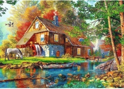 Découvrez le charme de la campagne avec ce puzzle qui, une fois assemblé, crée une image de 480 × 340 mm. L’illustration de Dominic Davison montre un cottage idyllique au bord d’un ruisseau paisible, entouré par la nature – un motif idéal pour la détente et la concentration.