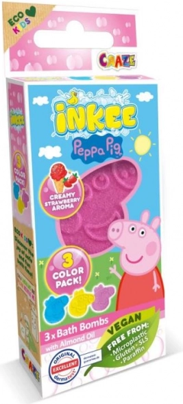 Apportez de la bonne humeur au bain de chaque petit fan de Peppa avec les bombes de bain effervescentes ludiques INKEE. Chaque boule colore l’eau différemment et la parfume d’un arôme de fraise crémeux, tandis que l’huile d’amande aide à laisser la peau douce et agréable.