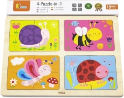 Le set comprend quatre puzzles séparés avec des illustrations colorées d'animaux adaptées aux enfants. Chaque image est composée de quatre parties, ce qui fait au total 16 pièces. Les puzzles sont conçus pour les enfants à partir de 18 mois et soutiennent leur motricité fine, leur raisonnement logique et leur créativité.