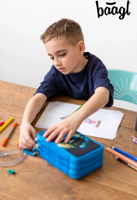 Découvrez la solution idéale pour tous vos besoins en fournitures scolaires avec cette grande trousse à trois étages de la marque Baagl. Sa construction solide avec dos renforcé assure une longue durée de vie et une utilisation facile. Le système de fermeture éclair de qualité YKK garantit un rangement sûr de vos crayons, stylos et autres accessoires.