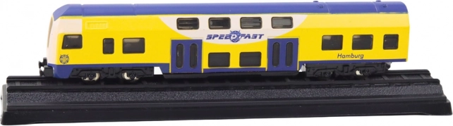 Découvrez un modèle de train à grande vitesse finement réalisé, orné des inscriptions « Hamburg » et « Speedfast », qui séduit par ses proportions fidèles et sa carrosserie métallique. Les proportions réalistes à l’échelle 1:48, les lignes épurées et les détails subtils, tels que les fenêtres et les portes, soulignent sa valeur de collection.