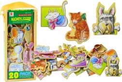Ensemble interactif et éducatif de magnets en bois avec de joyeux motifs d’animaux, idéal pour les petits explorateurs.