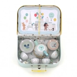 Ce charmant ensemble comprend 14 pièces illustrées par Sarah Betz, évoquant l’ambiance de Paris grâce à des couleurs et motifs délicats. Le set inclut un plateau, une théière et quatre tasses avec soucoupes, idéal pour des goûters-thé ludiques. Grâce à la valisette pratique, vous pouvez transporter facilement le set et l’utiliser même en voyage.