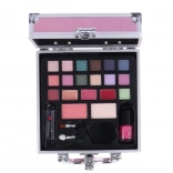 Cette élégante mallette cosmétique rose au format compact offre une organisation claire et un équipement complet pour maquiller yeux, teint et lèvres. La conception en aluminium avec fermeture métallique est à la fois durable et légère, idéale pour le sac à main ou les voyages.