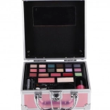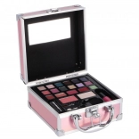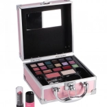 Mini mallette de maquillage rose élégante pour un usage quotidien et en voyage. Elle contient tout le nécessaire pour un maquillage rapide : 14 fards à paupières, couleurs scintillantes pour les lèvres, blush et poudre, rouge à lèvres et vernis à ongles. Un miroir pratique, un pinceau à blush, un applicateur mousse et un pinceau à lèvres garantissent une application confortable à la maison comme en déplacement.