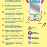 La musique et les sons proposés par ce lecteur stimulent efficacement la perception auditive de l’enfant. L’enfant apprend de manière ludique à manipuler des objets, comme s’il s’agissait du « vrai » lecteur de musique de maman et papa.