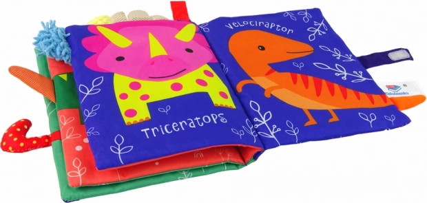 Découvrez les premières lectures pleines d’amusement avec des dinosaures ! Ce livre en tissu doux de huit pages avec de vives illustrations en couleur encourage l’exploration et soutient le développement sensoriel, la motricité fine ainsi que les premiers mots d’anglais. Grâce à sa fermeture sécurisée à scratch, il se range facilement et est idéal en déplacement.