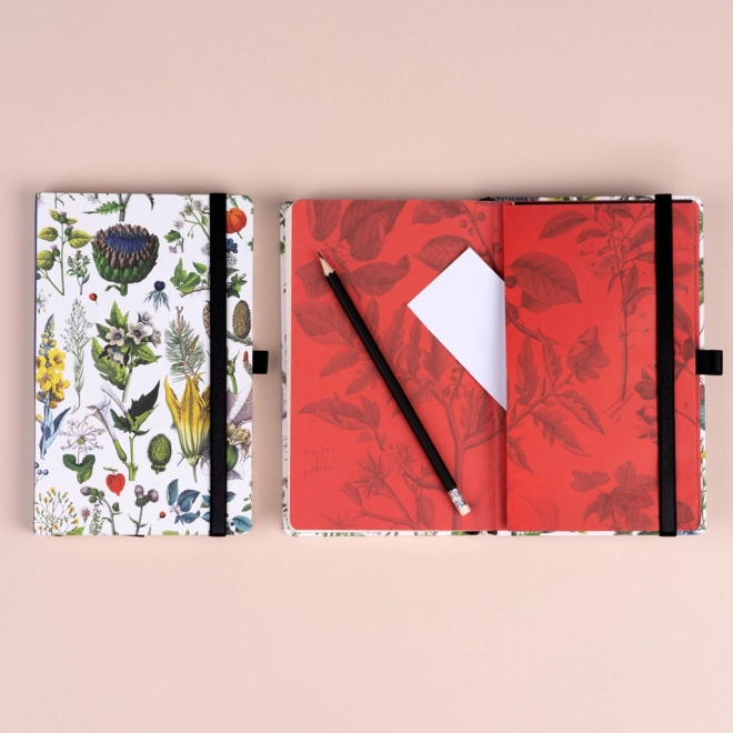 Carnet élégant de la collection Kateřina Winterová avec des motifs d’herbes au charme nostalgique, idéal pour les notes quotidiennes, la planification et les idées créatives. Il offre une couverture rigide, une fermeture élastique, une poche pour petits objets et un porte-stylo. À l’intérieur, vous trouverez 172 pages à points sur un papier jaune doux au format 13 × 21 cm.