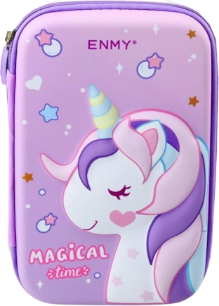 Grande trousse violette avec licorne 3D. Imperméable, dépliante, 2 pochettes en mesh et 6 emplacements pour crayons. Idéale pour l’école et les activités. Certification CE.