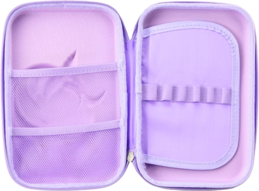 Grande trousse violette avec licorne 3D, dépliante 23 × 15 × 5 cm