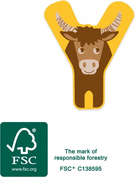 Lettre en bois Y de la nouvelle gamme ABC avec des animaux, idéale comme décoration pour la chambre d’enfant. Grâce à ses bords arrondis et à son design pastel joyeux, elle est non seulement esthétique mais aussi agréable au toucher.