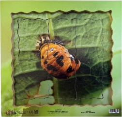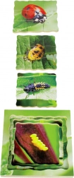 Puzzle éducatif illustrant le fascinant cycle de vie de la coccinelle, qui capte l’attention des enfants et leur permet de découvrir la nature à partir de véritables photographies.