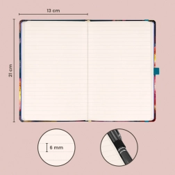 Les pages lignées sur papier jaune offrent un contraste agréable et une lecture confortable. Le format compact 13 × 21 cm se glisse parfaitement dans un sac à main ou un sac à dos, tout en offrant suffisamment d’espace pour 172 pages de notes, tâches et idées créatives.