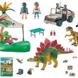 Le set comprend un Stegosaurus et un Deinonychus avec des parties mobiles, ainsi qu’une multitude d’accessoires : œufs, nid, arbres, outils, ordinateur portable et petits animaux pour un jeu encore plus réaliste.