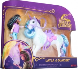 La poupée Layla possède 7 points d'articulation pour des poses variées et la licorne Glacier se distingue par sa magnifique crinière coiffable.