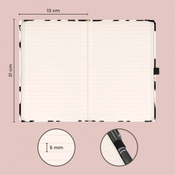 Le carnet contient 172 pages d’un papier jaune agréable, idéal pour l’écriture quotidienne, la planification et les idées créatives. Ses dimensions compactes 13 × 21 cm se glissent facilement dans un sac ou un sac à dos et la poche intérieure protège vos notes volantes, cartes de visite ou autocollants.