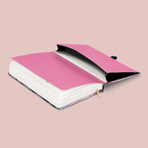 Le carnet stylé NOTIQUE au motif sakura est idéal pour l’écriture quotidienne. Grâce à sa couverture rigide et à sa fermeture élastique, le contenu reste en sécurité, tandis que le passant pour stylo et la poche intérieure pratique facilitent l’organisation des petits objets.