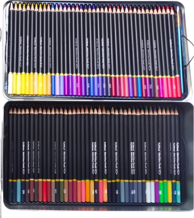 La mine de 3,8 mm de diamètre résiste à la casse et glisse agréablement sur le papier. L’étui métallique protège l’ensemble et garde les couleurs bien organisées, que vous créiez à la maison, en déplacement ou en plein air.