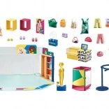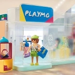 Découvrez la joie du shopping avec la boutique PLAYMOBIL. Le magasin à deux étages offre les possibilités suivantes :