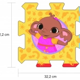 Découvrez un jeu amusant et sûr avec le puzzle en mousse inspiré de la série BING le lapin. Les pièces en matériau résistant ont une épaisseur supérieure de 1,5 cm, sont douces, lavables et inoffensives pour la santé. À partir de 8 pièces, vous créez facilement une surface de 117 × 60 cm, assemblez un cube, un tunnel pour petites voitures ou utilisez-les comme décoration murale.