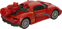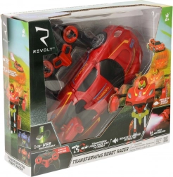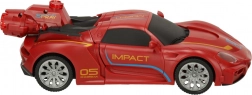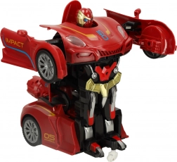 D’une simple pression sur un bouton, la voiture rouge se transforme en robot prêt à relever tous les défis.