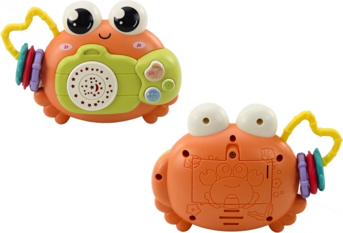 Crabe interactif avec hochet et projecteur, orange