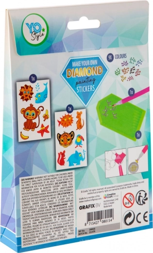 Créez vos propres décorations scintillantes avec le kit de peinture diamant animaux. Il contient tout le nécessaire pour une création facile : 12 autocollants, 9 couleurs de strass, applicateur, cire et plateau. Relaxation, plaisir créatif et résultat immédiat sans compétences artistiques.
